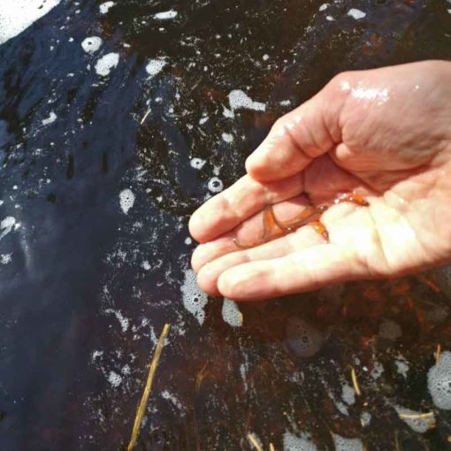 Kuvassa näkyy henkilö meidän yhdistyksestämme koekalastamassa istutuksiamme.